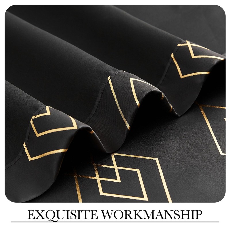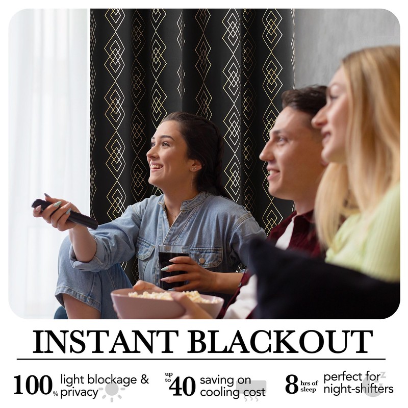 - Full blackout curtains: Looking for blackout curtains for better sleep? Try our Gold Foil Moroccan Metallic Print curtains. Made with triple weave, they block out all light and noise, ensuring a restful sleep or relaxing environment. They're stylish, durable, and add elegance to any room. Plus, they're energy-saving, balance temperature, and offer thermal insulation.