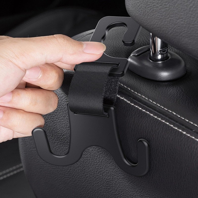 These car accessories are efficient storage and organizing tools. They can be used as purse hooks on the headrests of car seats, as well as stroller hooks, electric car or bike hooks without baskets, door hooks and closet hooks. These hooks are versatile and are the ideal solution for hanging handbags, groceries, takeout, coats, hats, towels, keys, water bottles, drink bottles, toys, potted plants and more. Whether your car headrest is removable or not, this product is easy to install. Simply thread the webbing between the two hooks, adjust the length, snap one of the hooks onto the fixing post, fix it and the other hook will be ready to hang things. The webbing can be easily wrapped and secured to ensure a perfect fit.