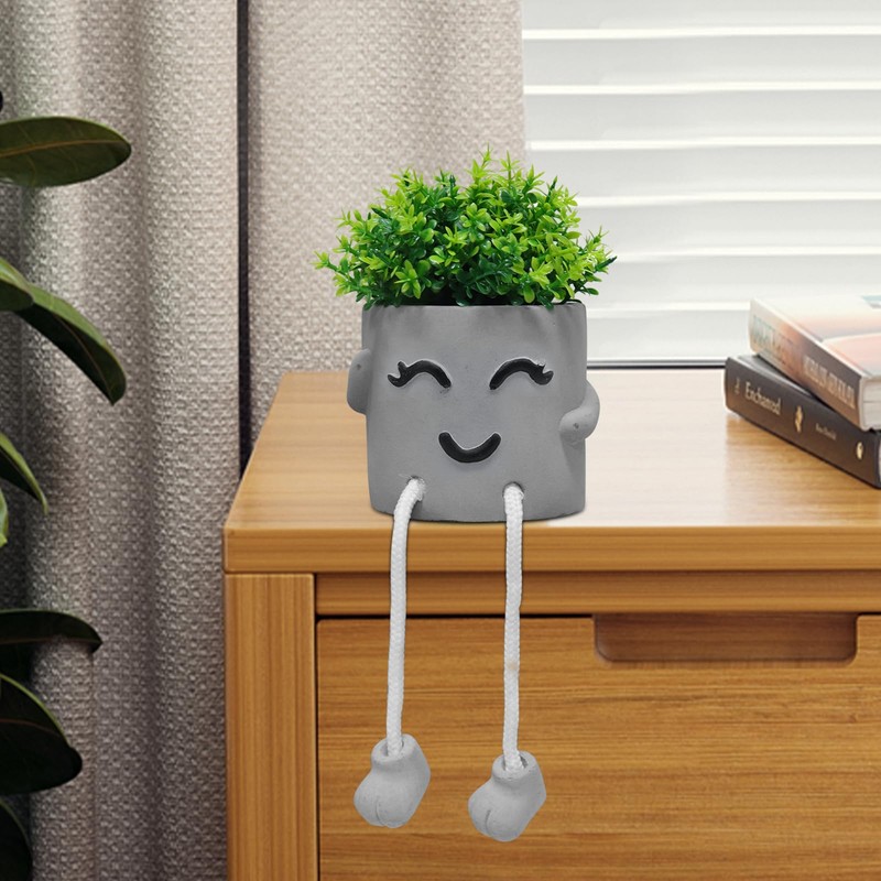 - 🍃🍃【Unique Design】 Funny plant pots creative hanging foot design is stylish and fun, the cute plant pots have a smiley emoji look and are perfect for a simple variety of fake plants, the grey looking fake succulent home decor will brighten up your home and create a clean atmosphere.