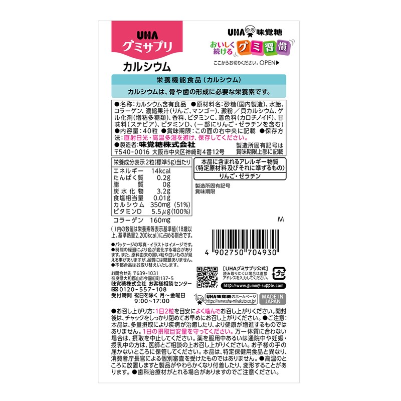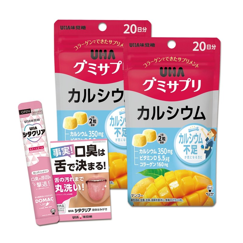 UHA味覚糖 グミサプリ カルシウム 20日分(40粒) マンゴー味 2個セット シタクリア液体はみがき試供品付き