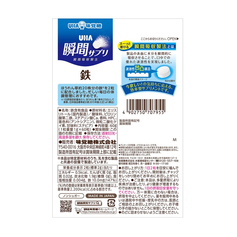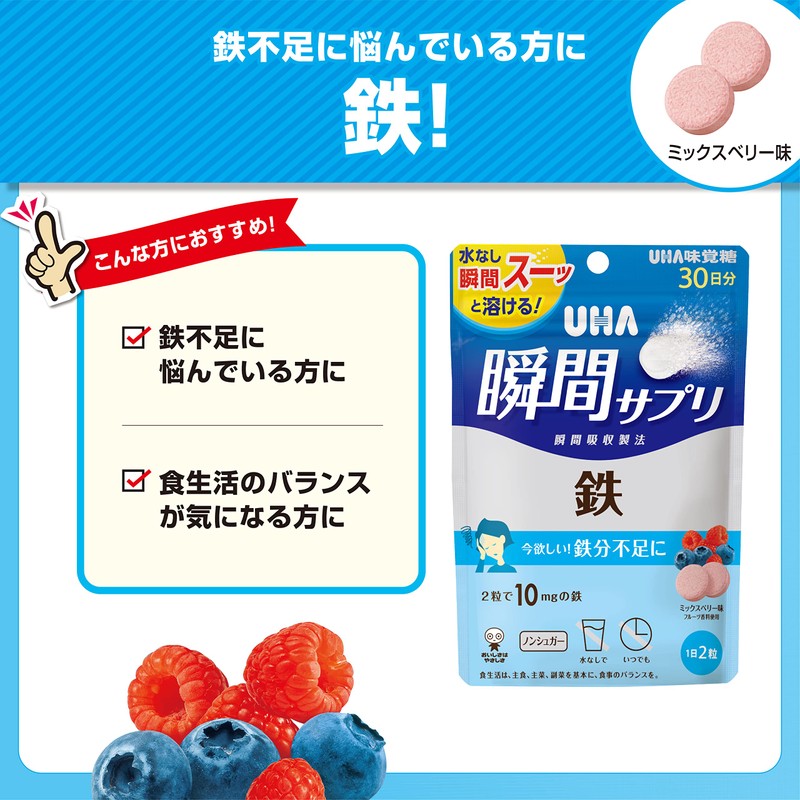 【まとめ買い】UHA瞬間サプリ 鉄 30日分(60粒) ミックスベリー味 3個セット ノンシュガー 飲み込むのが苦手な人に!おいしいから毎日続けやすいUHAサプリ UHA味覚糖