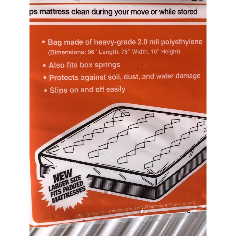 UHaul King Size Mattress Protector UHaul Moving Bag Large Size Fits Padded Tops Sealed