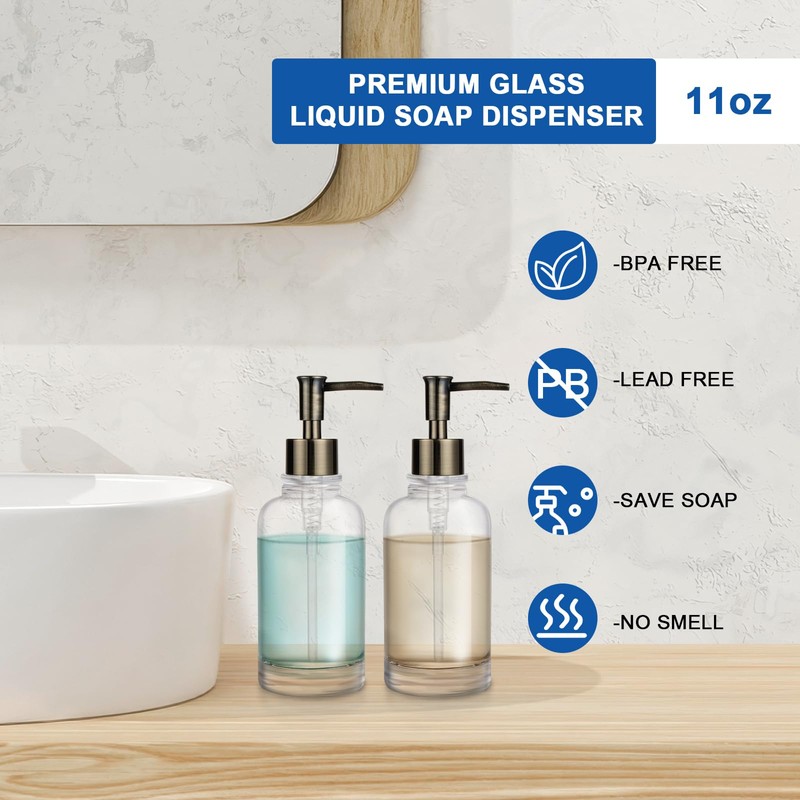 - 【Premium Quality】Crafted from high-quality glass, it is not only sturdy but also offers a clear view of the soap level inside.
