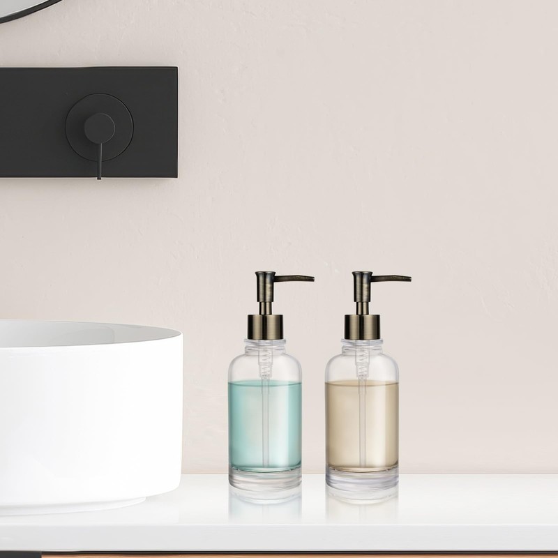 UHEY HOME Glass Liquid Soap Dispenser Bathroom, 2PCS 11oz Kitchen Reusable Soap Dispenser with Pump, Modern Refillable Liquid Soap (Clear)