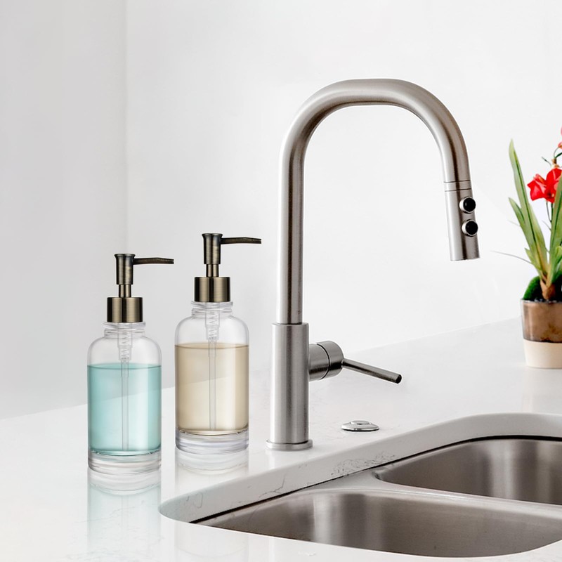 - 【Stylish Appearance】The soap dispenser showcases a transparent brown glass bottle with a silver pump, adding a touch of elegance and modernity to any space.