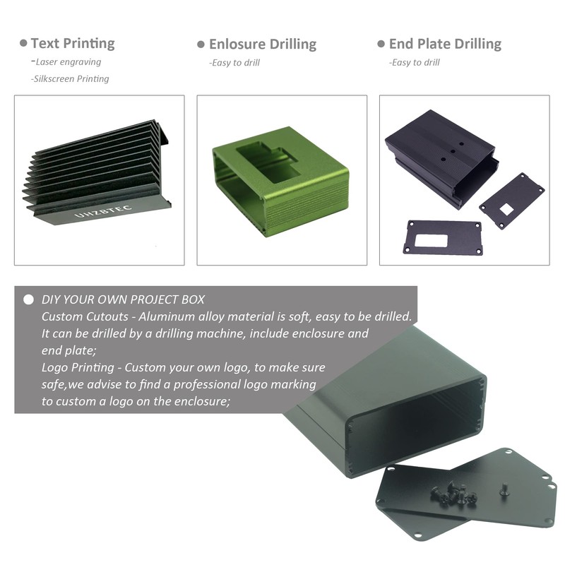 - [Easy DIY Customization] Easy to drill connector interface on both enclosure and end face plate. Custom your own design with our UHZBTEC project box;