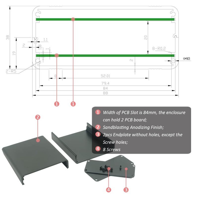 - [Content] Package include 1*enclosure, 2*end plate, 8*screws;
