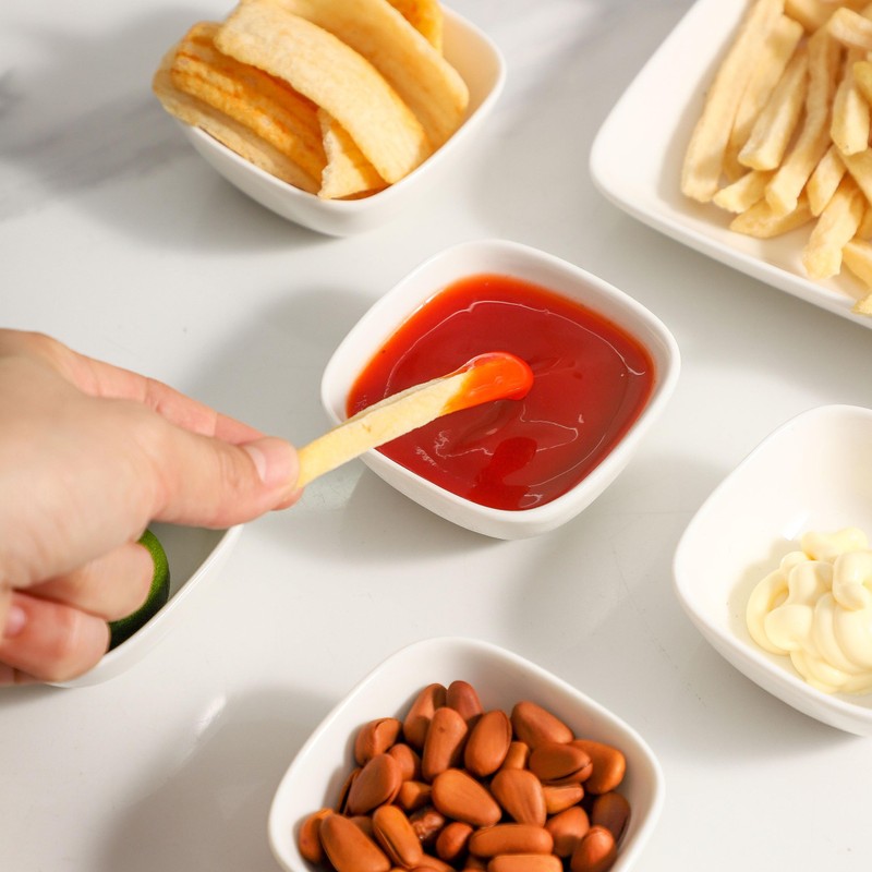• A little Family Dinner Helper: You won't easily turn over the sauce because of the stable with square bowl bottom. It's very practical, firm tiny dipping bowls with robust square base are of kids food. A gift for the chef to organizing custard, crackers spices or olive prep.