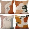 Uiiooazy Abstract Faces Cushion Covers, Boho Terracotta Green Palm Leaves Square Cushion Cover Velvet Decorative Cushion Cover for Sofa, Couch, Bedroom, Living Room, Car, Set of 4, 40 W x 40 cm