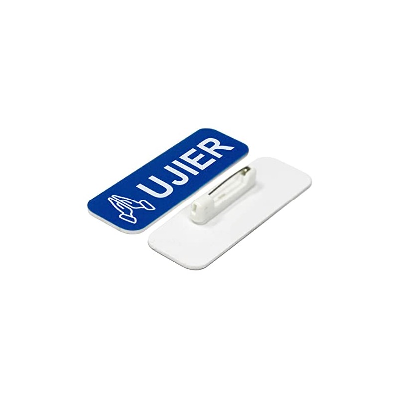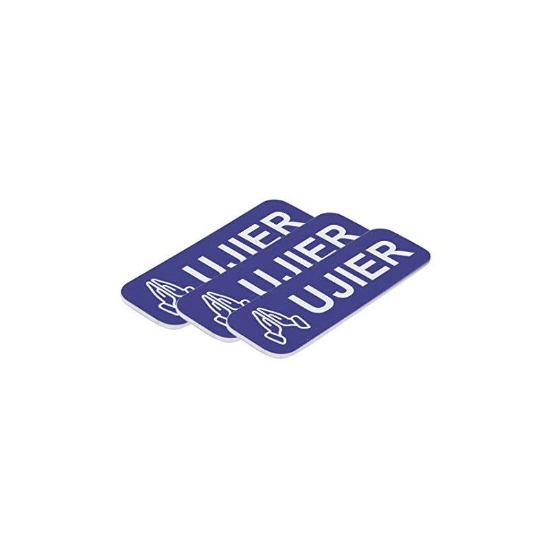 Ujier Hands 1 x 3" Rounded Corners Name Tag (3 Pack). Easy to attach with included fastener. Blue color with White text. Great name tags for your church or parish ushers.