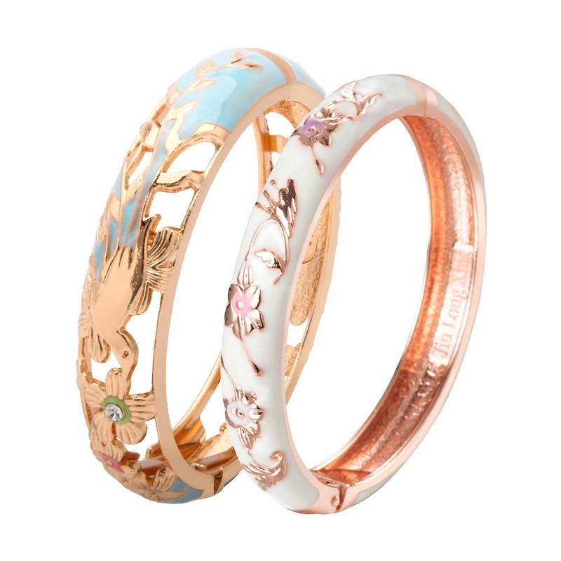UJOY Colors Handcraft Jewelry Cloisonne Bracelet Enamel Hollowed Bird Spring Hinged Womens Bangles Gifts Box 88A31-55A81 Blue White