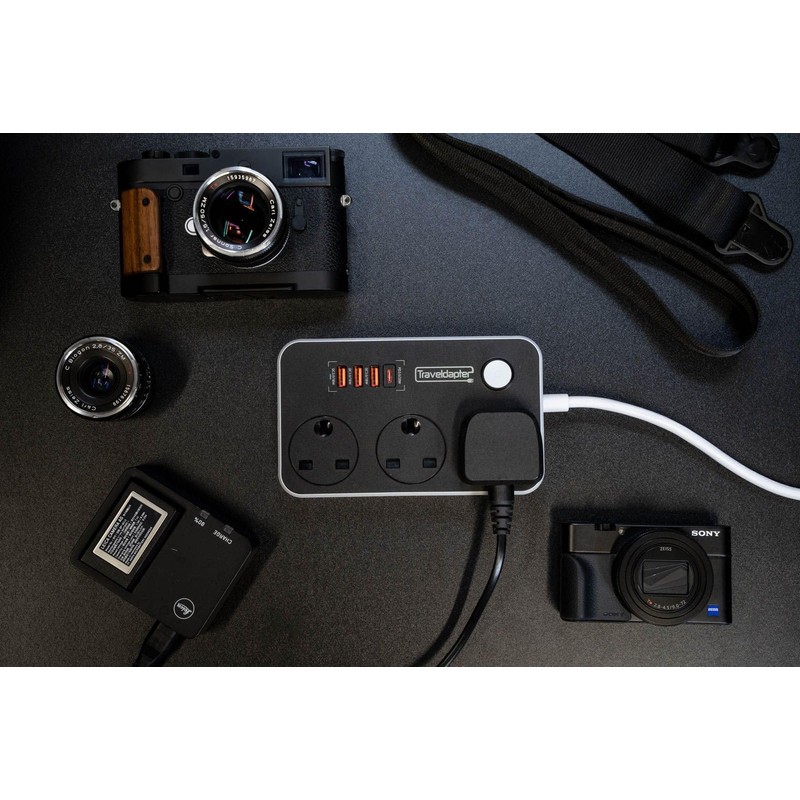 - PEACE OF MIND ON-THE-GO: Don't leave home without your travel adapter, which is perfect for business trips and family vacations thanks to the multiple sockets including 3 type G sockets with safety sliders, 3 fast charging USB ports and 1 USBc fast charging port ensuring you are fully covered. This high quality item also has a switch to ensure safety at all times.