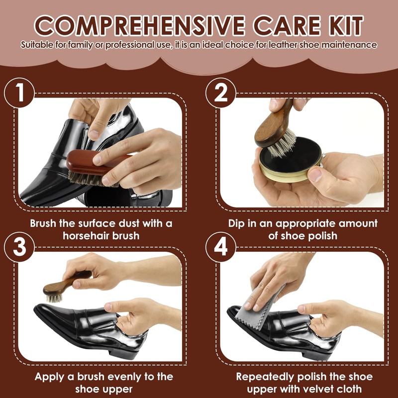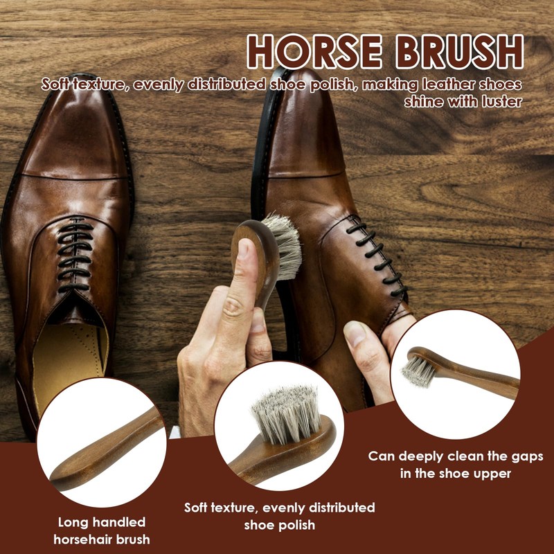 - All in One Set: This horsehair shoe polish kit includes multiple accessories, covering all aspects of leather shoe cleaning, polishing, and maintenance