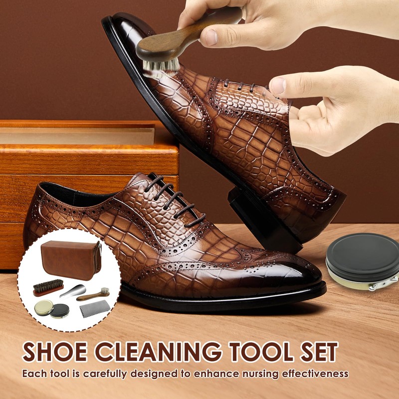 This shoe caring kit streamlines leather shoe maintenance with a comprehensive set of tools. Combining versatility and quality, it simplifies the process for both casual wearers and shoe enthusiasts.