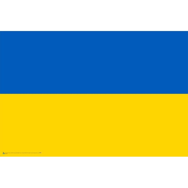 This multicolor standard sized paper poster measures 36 inches by 24 inches. It makes the perfect addition to a wall, door or ceiling in an entertainment, gaming or movie room as well as teen's bedroom or college student's dorm room. This classic image is of the Ukrainian Flag. The poster fits in a standard 24" x 36" frame. Hang the poster with tacks, double stick tape, or poster hangers (not included). It is printed on 65 lb cover poster paper with long-lasting vibrant inks. Show your support for Ukraine.