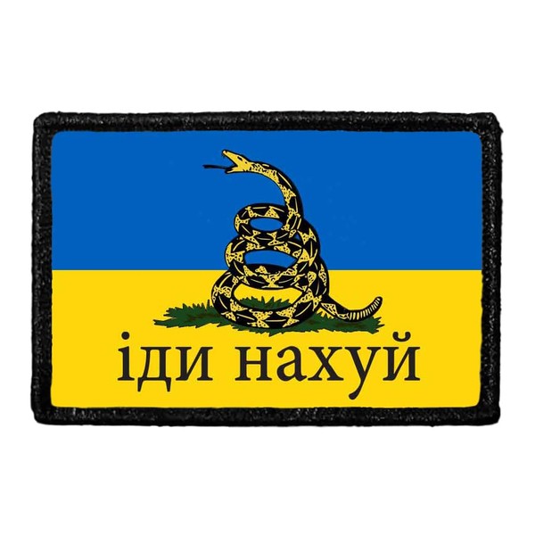 Ukraine Flag - Rattlesnake Flag Patch | Hook and Loop Attach for Hats, Jeans, Vest, Coat | 2x3 in | by Pull Patch