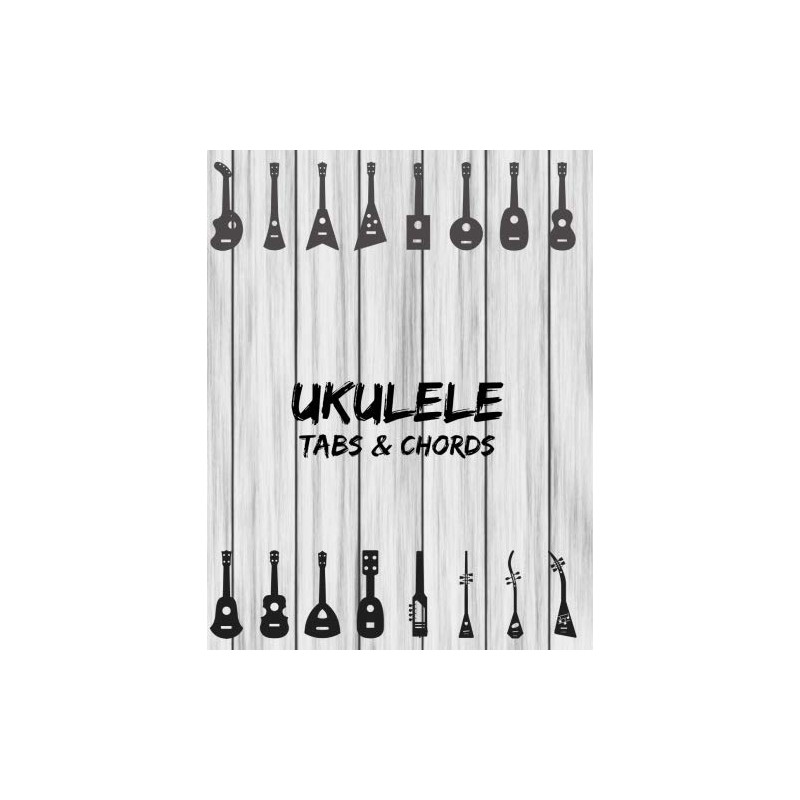 Ukulele Tabs & Chords: Music Sheet Book Four Strings Tablature Blank Space For Chord Staffs & Title - Grey Wood (Large 8.5" x 11" Size)