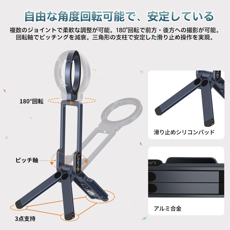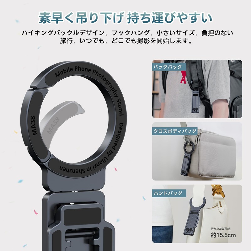 Ulanzi MA38 Smart Phone Tripod, Mini Tripod, Compatible with Magsafe, Selfie Stick, Portable Stand, Foldable, Magnetic Magnetic Included, Hook, Multi-Function, 360 Degree Rotation, 1/4 Screw Hole