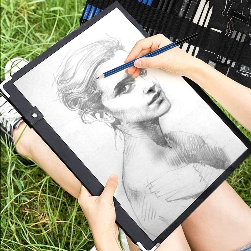 Ulifeme Sketch Drawing Pencil Set, 50pcs Sketching Pencils Art Supplies Kit, Charcoal Pencils, Graphite Pencils, Eraser, Drawing Tools for Artist, Beginners, Children & Adults, Black Canvas Bag Packed