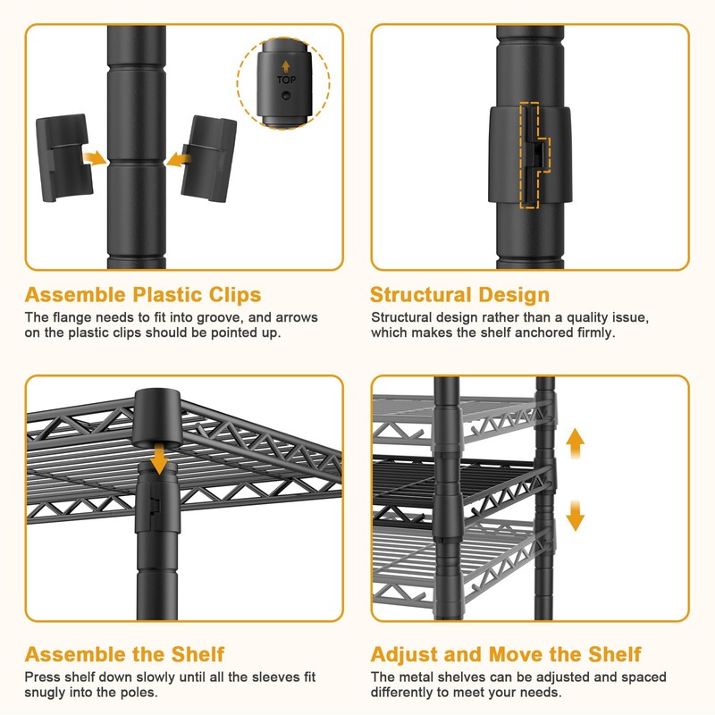 - Multifunctional Portable Closet: This garment rack is equipped with adjustable wire shelves and detachable hanging rods. The slip-sleeve locking system allows the shelves to be adjusted in 1-inch increments, maximizing storage space for shoes, bedding, hanging clothes, and folded seasonal garments