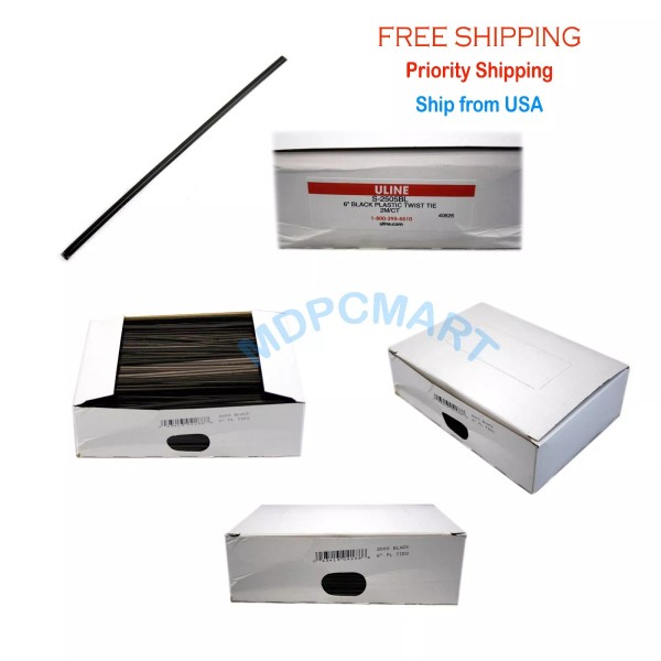 Uline New in box 2000 pcs black 6" plastic twist ties - s -2505bl