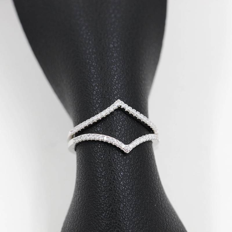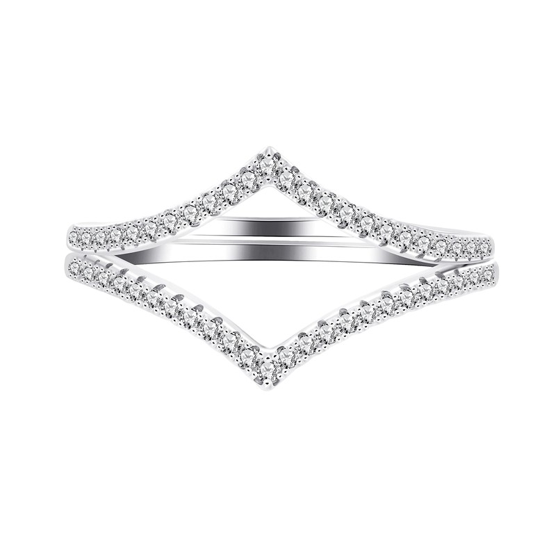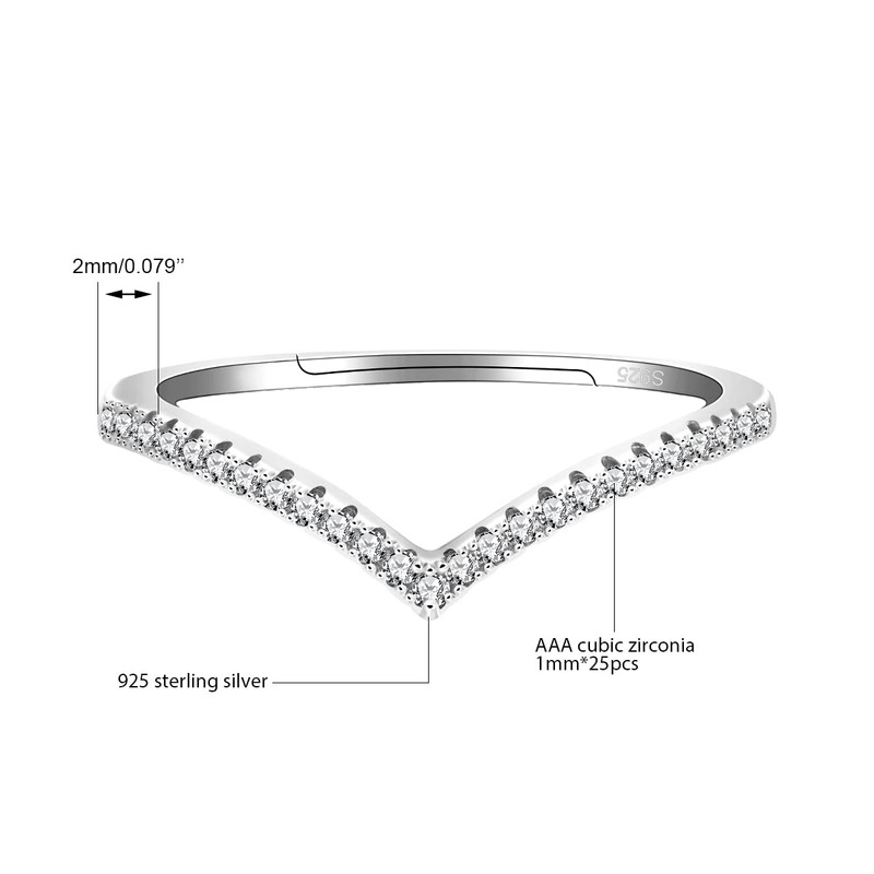 Uloveido 925 Sterling Silver Pointed V Shaped Ring Guard Enhancer 2pcs Stackable Tiny CZ Paved Eternity Bands Y1518 (Adjustable)