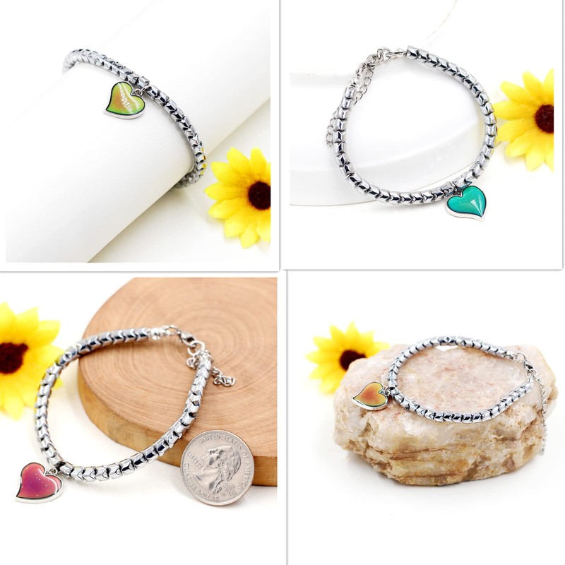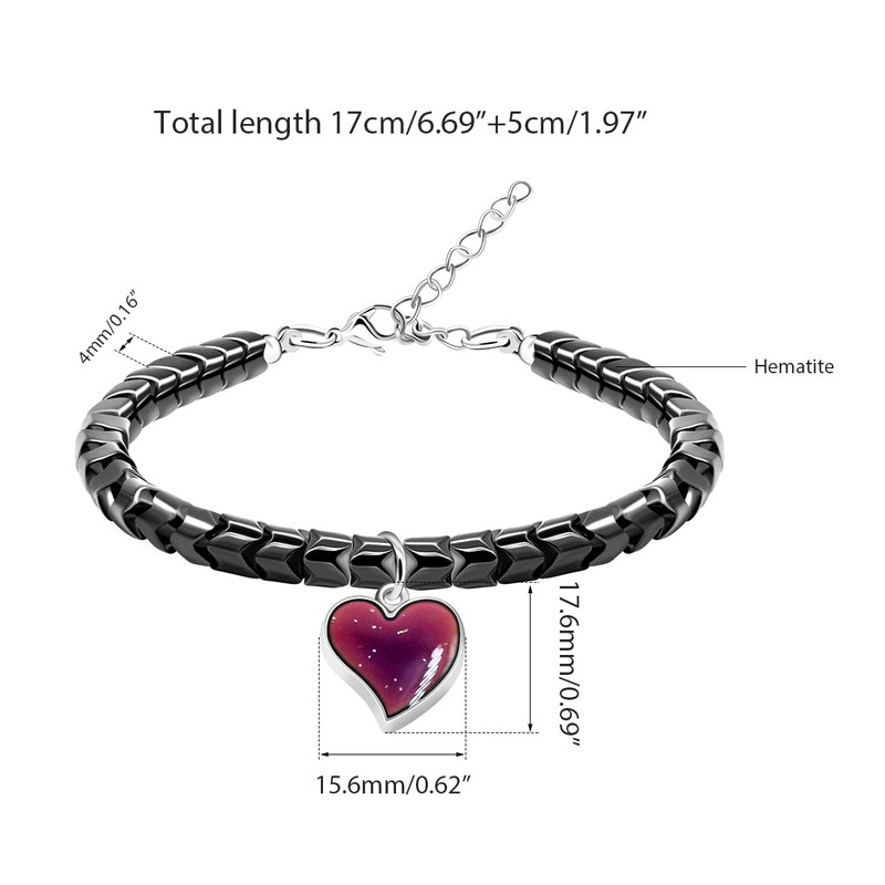 - ♥ Style: Mood Heart Charm Hematite Bracelet, the heart is tempreture sensitive, will change to different color when temperature changes.