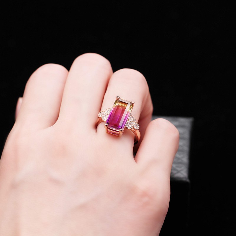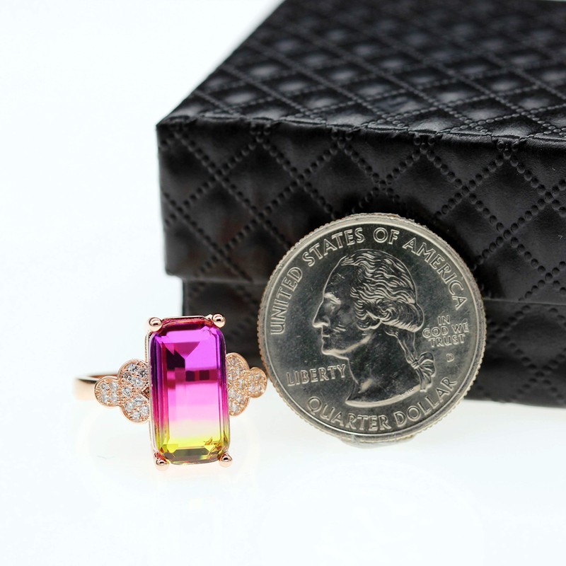 Uloveido Created Tourmaline Gemstone Rings18k Rose Gold Plated Ring with Big Rectangle Stone (size 6) RJ400