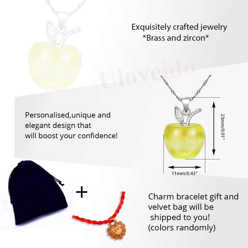 - ❤Main stone:1 piece of apple-shaped created jade stone in half transparent white color and another marquise cut cubic zirconia stone for this apple necklace.