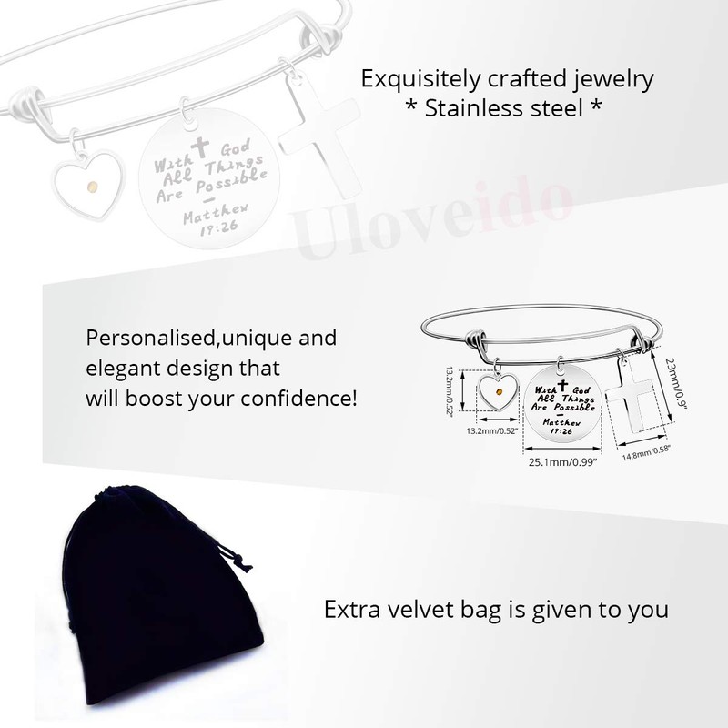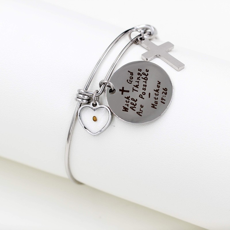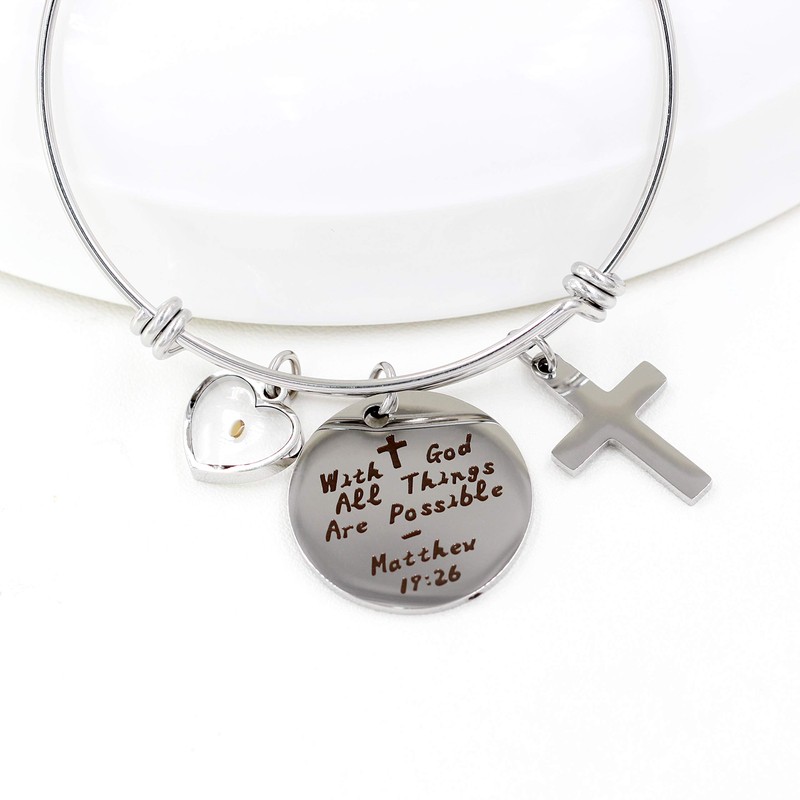 - ♥ Expandable Christian Bangle Bracelet, engraved bible "With God All Things are Possible Matthew 19:26". GIFT- An inspiring Christian gift to show your love and faith in your religion.