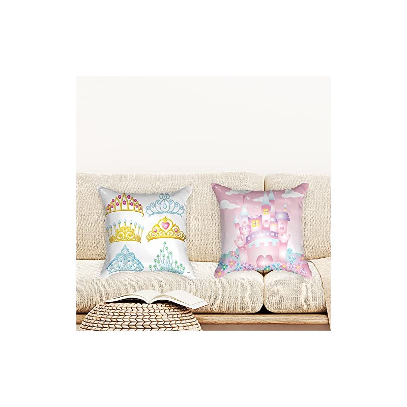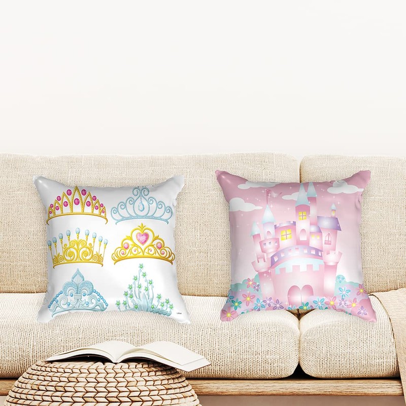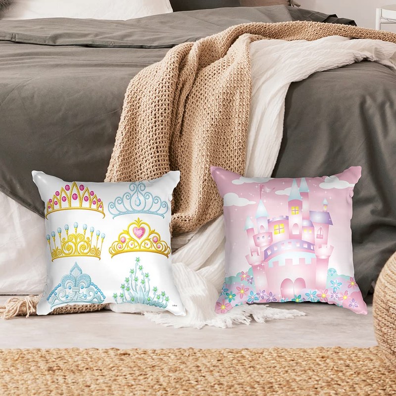 Ulticool - Cushion Cover - Castle Crowns Tiara - Set of 2 Designs - 45 cm x 45 cm - Decorative Cushion without Filling - Cushion Cover Accessories for Sofa/Bed - Pink