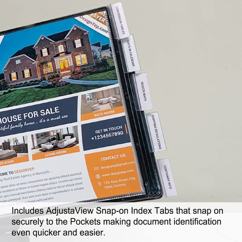 Ultimate Office AdjustaView Easy-Load Replacement Pockets & Tabs - Fits Ultimate Office AdjustaView Organizers Only. These replacement pockets keep your organizer looking like brand new. Package contains 10 black pockets & clear indexing tabs.