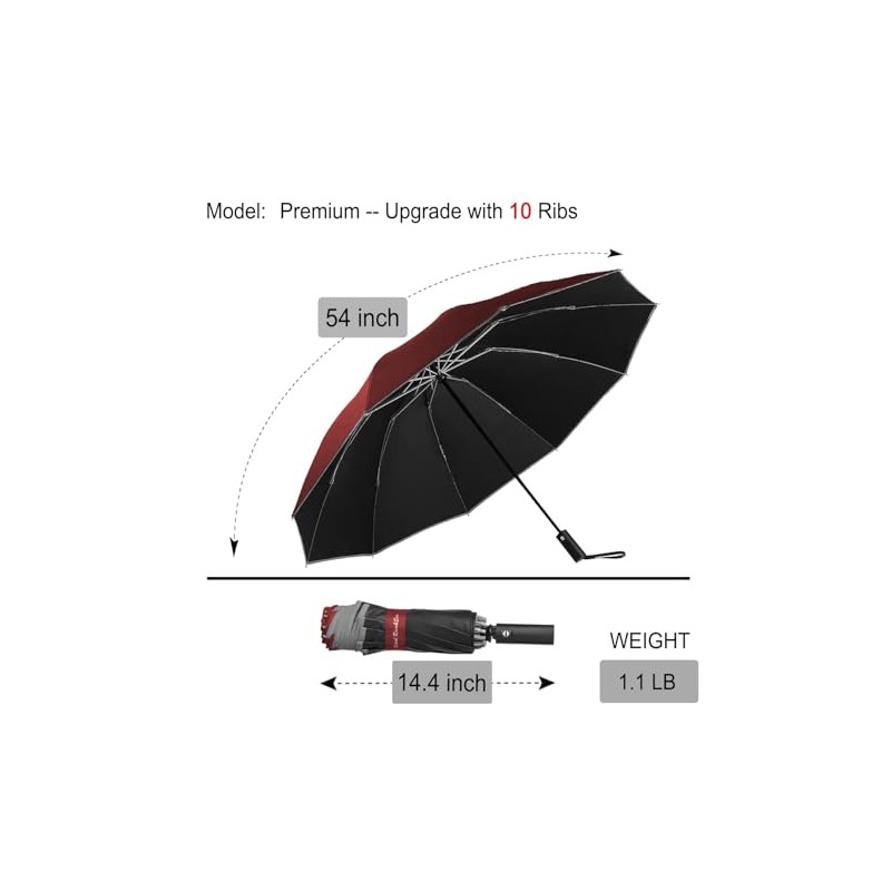 - MULTI-RIB WINDPROOF DESIGN-10 RIB OPTIONS: Experience unparalleled durability with Ward Rain&Sun inverted travel umbrellas, upgrade with 10 fiberglass ribs. Each rib count offers varying levels of wind resistance and strength, ensuring reliable protection against strong gusts and heavy rain without flipping or breaking.