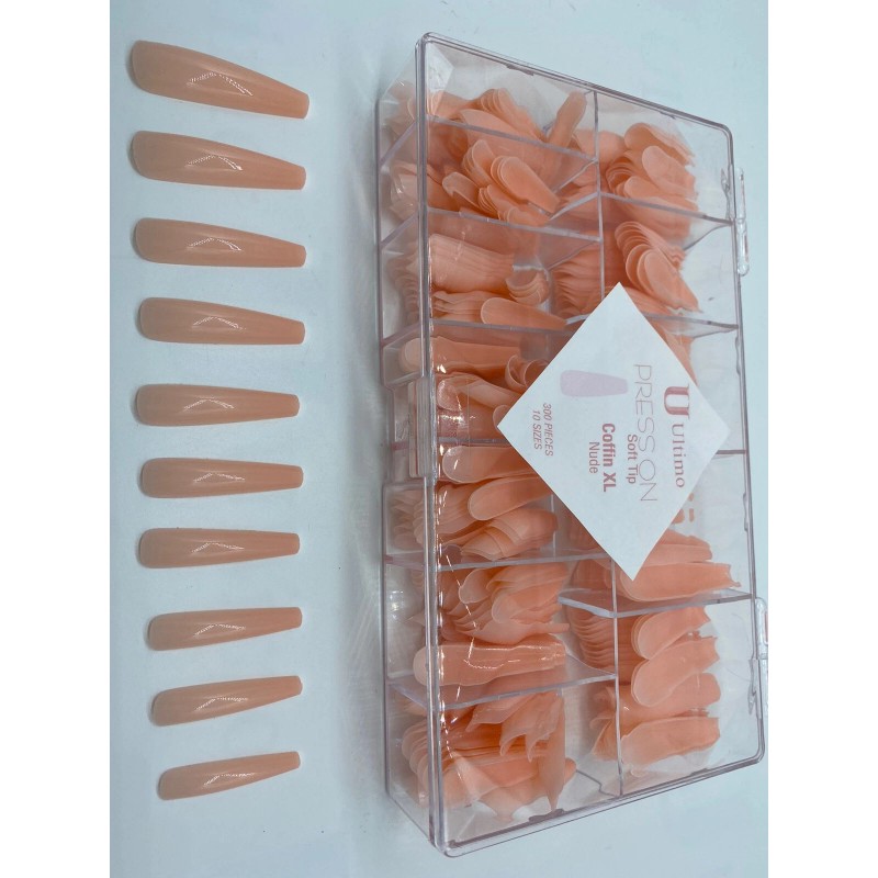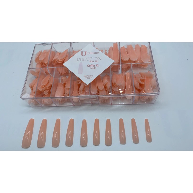 Ultimo Press on Tips Coffin Soft Tip Extra Long Nude 300pc Size 0-10 ÚLTIMO