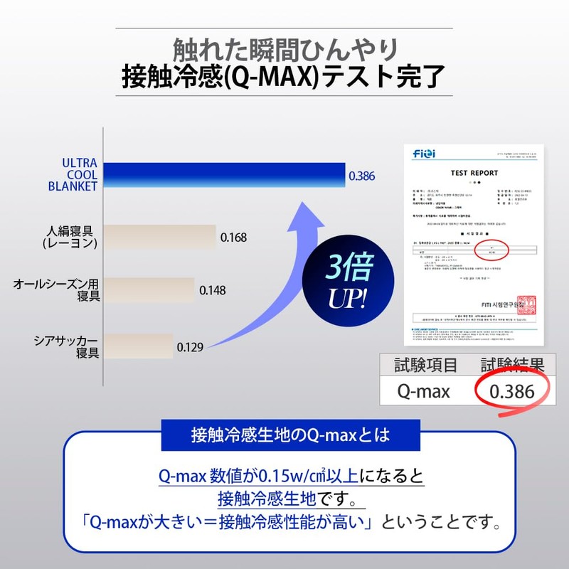 Cools the moment you touch it. ULTRA COOL BLANKET is a cool blanket that has been tested to the touch cool sensation (Q-MAX) test.