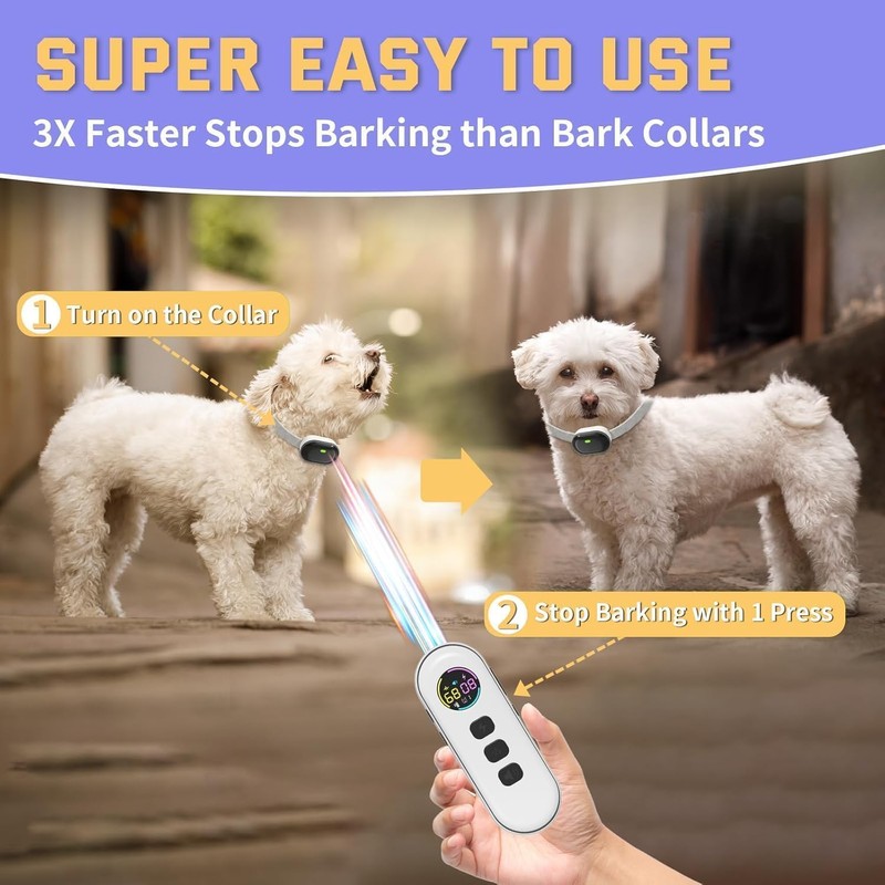 - 【Super Easy to Use, 100% Effective】This e-collar requires the use of a remote control, eliminating the false trigger issues common with automatic collars. It stops barking three times faster than regular bark collars, effectively stopping barking with a simple press of a button. Note: This collar requires a remote and is not automatic.