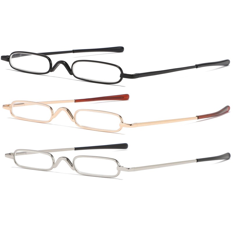 Ultra Small Reading Glasses For Men Women Slim Pocket Readers with Pen Clip Metal Case Spring Hinge 3 Pairs 3.0