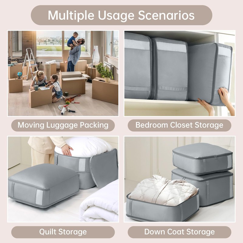 - HASSLE-FREE COMPRESSION These compression bags are easy to use and allow for quick storage and organization of items, effectively managing clutter in attics, basements or wardrobes.