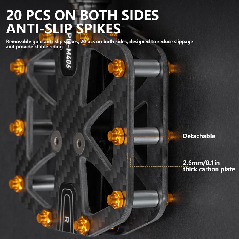 - Precision-engineered with carbon fiber construction and aerospace-grade titanium axle, these pedals deliver 250g ultralight performance with 2800W+ impact resistance