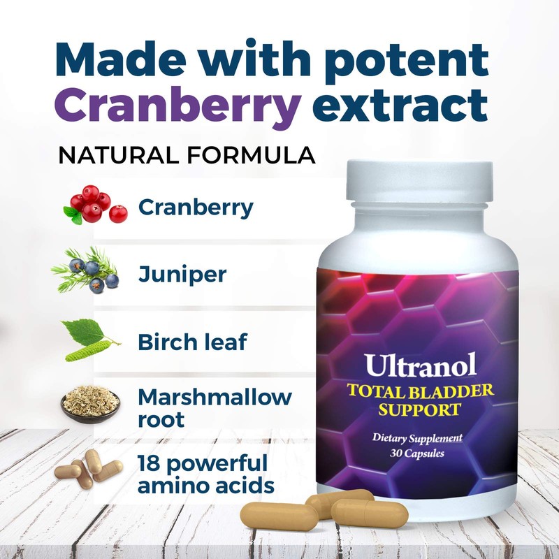 - TOTAL BLADDER SUPPORT - Ultranol Total Bladder Support provides necessary vitamins and minerals to support urinary health. The proven formula supports bladder muscle strength to promote less urgency and minimize leaks due to laughing, coughing and sneezing, even jumping for greater freedom in your everyday life.