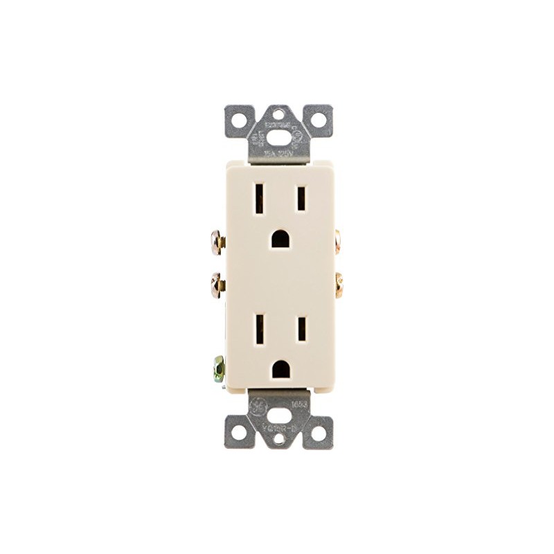 UltraPro GE Grounding Duplex Designer Outlet, 3 Prong Electrical Socket, Easy Install, 15 Amp, UL Listed, Light Almond, 17817 GE in-Wall Receptacle