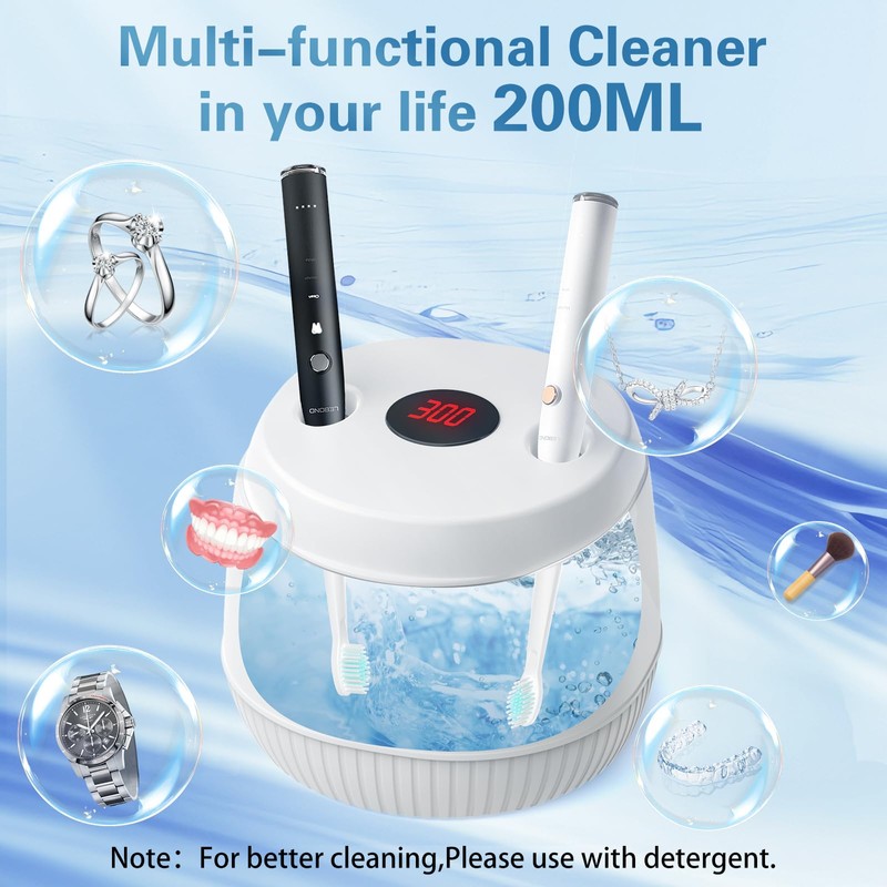- 【LARGE 200ML CAPACITY】This ultrasonic cleaner has a large 200ml capacity. Provides plenty of space for cleaning multiple devices at the same time. Ideal for families or those who use multiple dental accessories (retainers, night guards and mouth guards).