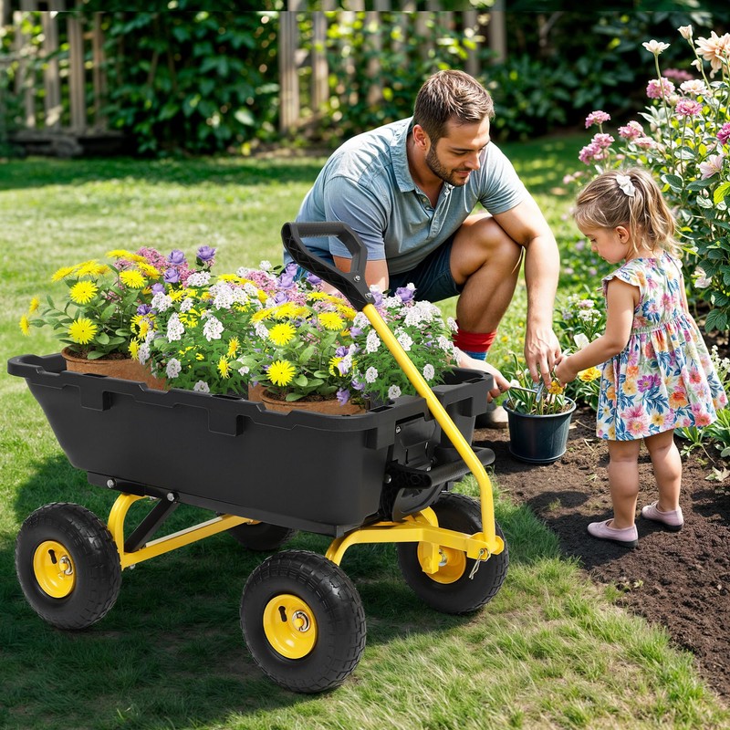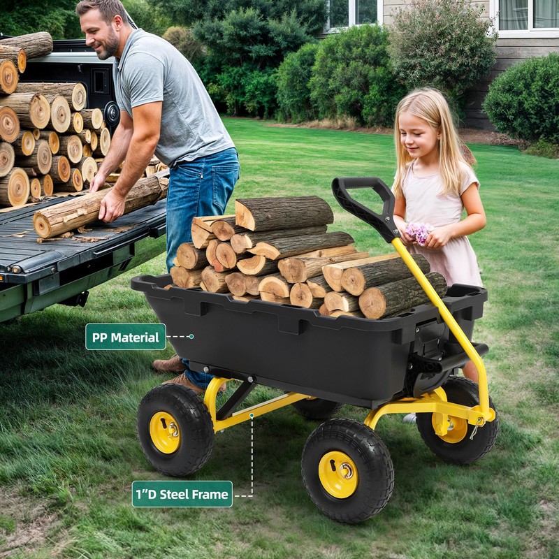 Ultym 800lbs Garden Dump Cart, Heavy Duty Yard Dump Wagon with 10" Pneumatic Tires, Utility Cart for Yard, Farm and Garden(Yellow)