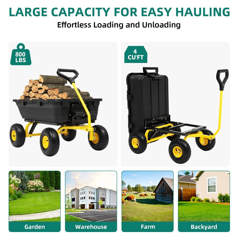 - High-Capacity Garden Dump Wagon: Boasting an 800-pound load capacity and durable 40.5"L×28"W×32.25"H dimensions, this cart easily hauls heavy materials like mulch, firewood, and large planters. Designed for demanding tasks in gardens, yards, or farms, it streamlines transporting bulky essentials while maintaining stability and strength. Ideal for landscaping, agricultural chores, or property upkeep.