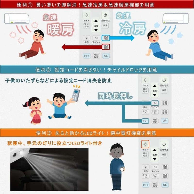 - Equipped with our exclusive “Hayapita” manufacturer direct settings and automatic search settings to automatically search the manufacturer code for your air conditioner (please make sure to set the air conditioning code when using for the first time).
