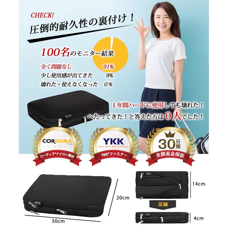 - (Precisions) The compression bags can be pulled and compressed, so they are easy to put on load. Durability is a huge challenge in previous products. Therefore, our product uses Cordura material that is 7 times more durable than nylon as the outer material and is used by the military. In addition, the zippers are made from YKK advanced grade for superior durability