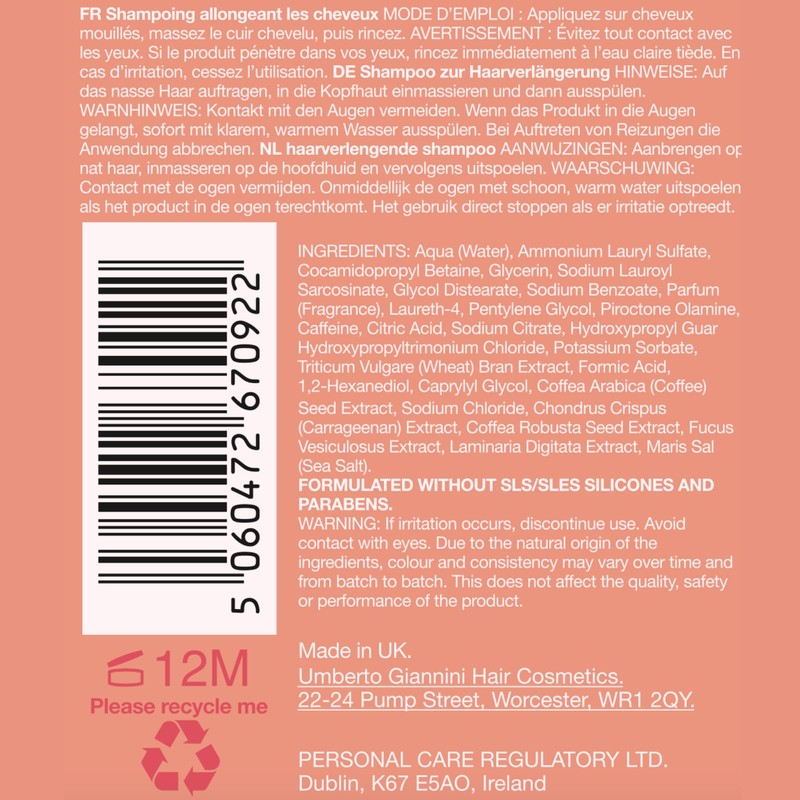 - Caffeine-Gro Complex - Umberto Giannini unique proprietary complex contains Caffeine and Black Coffee Seed Extract to stimulate circulation, Organic Pea Sprout Extract to accelerate hair growth and prolong hair lifecycle, and Seaweed and Marine Nutrients for hair health