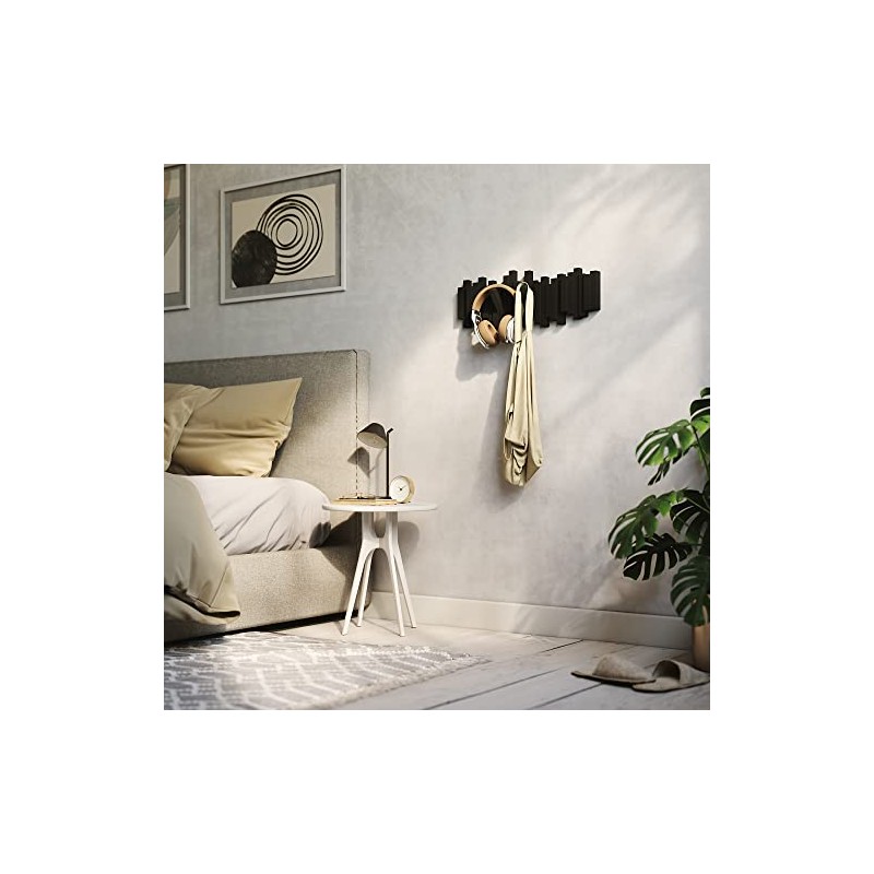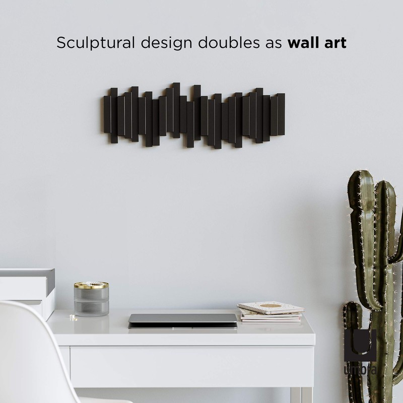 Umbra Umbra Sticks Wall-Mounted Coat Rack Rail Hook with 5 Retractable Pegs C Modern, Space-Saving Storage Organizer, Black