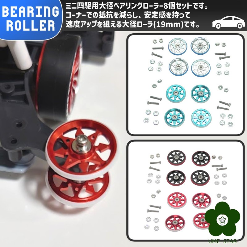 - Set of 8 large diameter bearing rollers for mini 4WD Large diameter roller (0.75 inch (19 mm) to reduce corner resistance and increase speed with stability