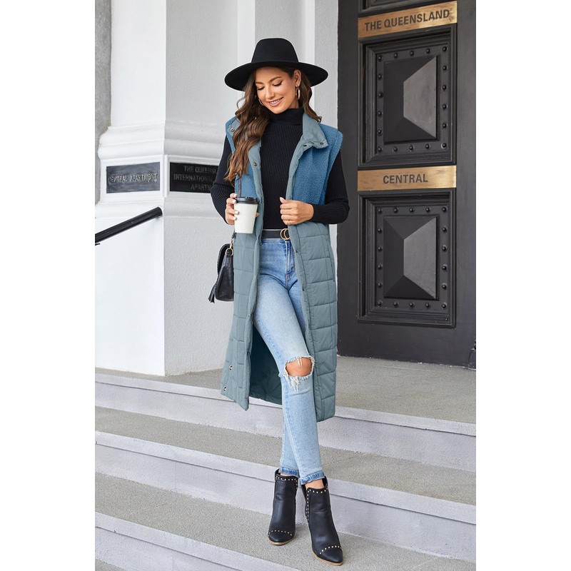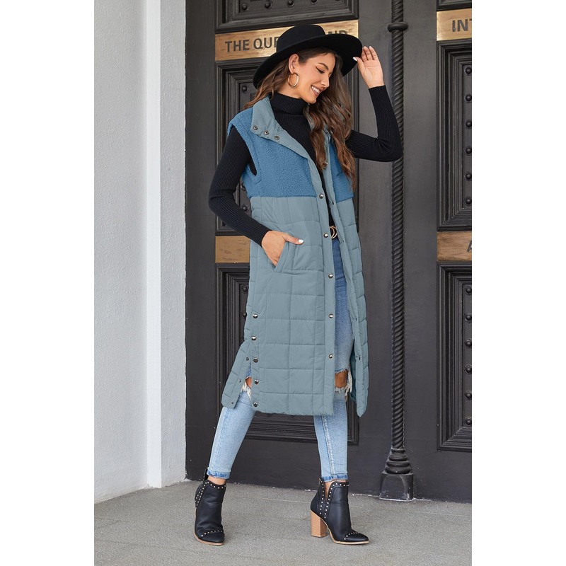 UMEKO Women's Long Puffer Vest Fleece Jacket Winter Button Down Sleeveless Coats